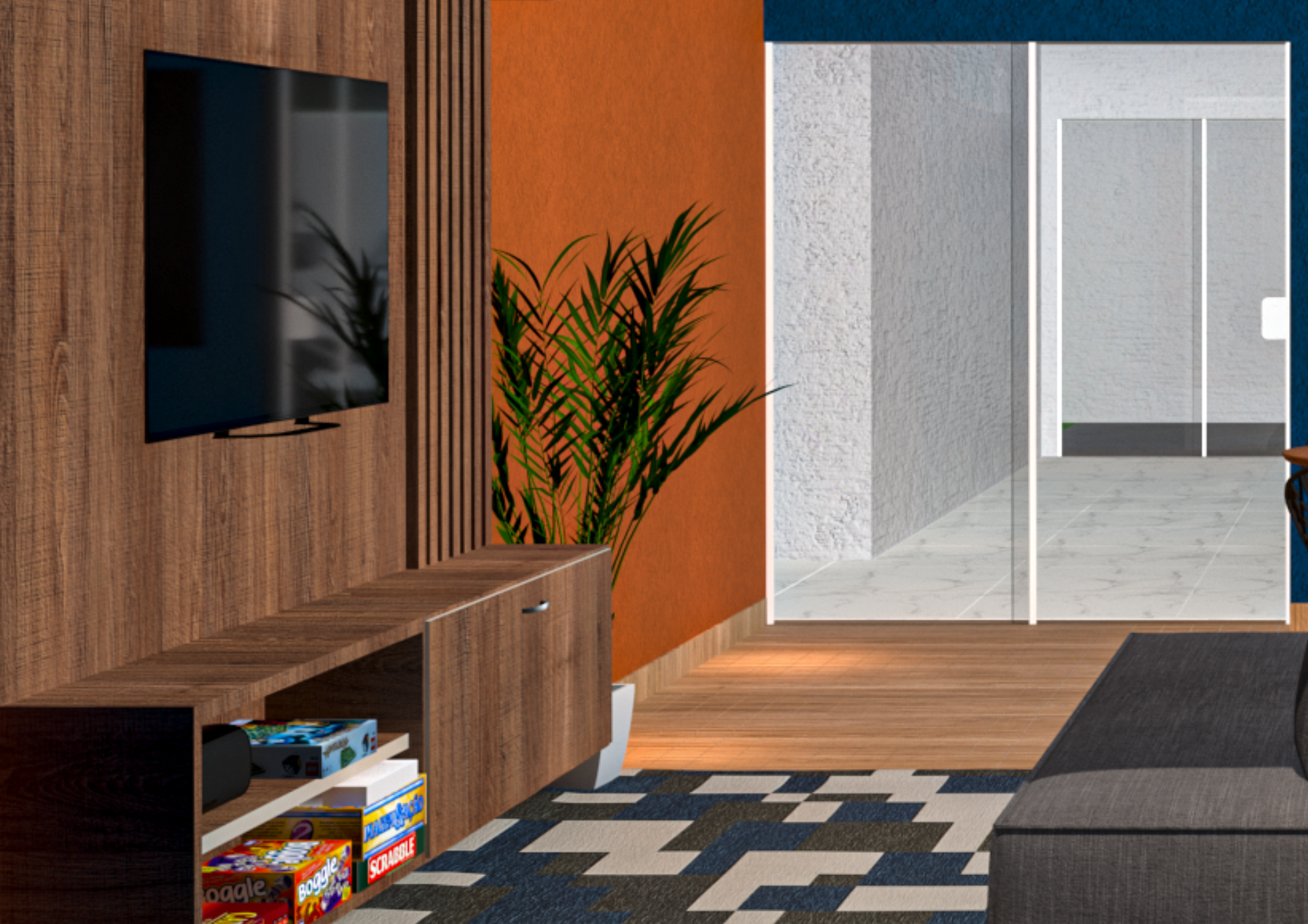 Ambiente moderno e aconchegante, ideal para receber amigos e familiares em momentos especiais.